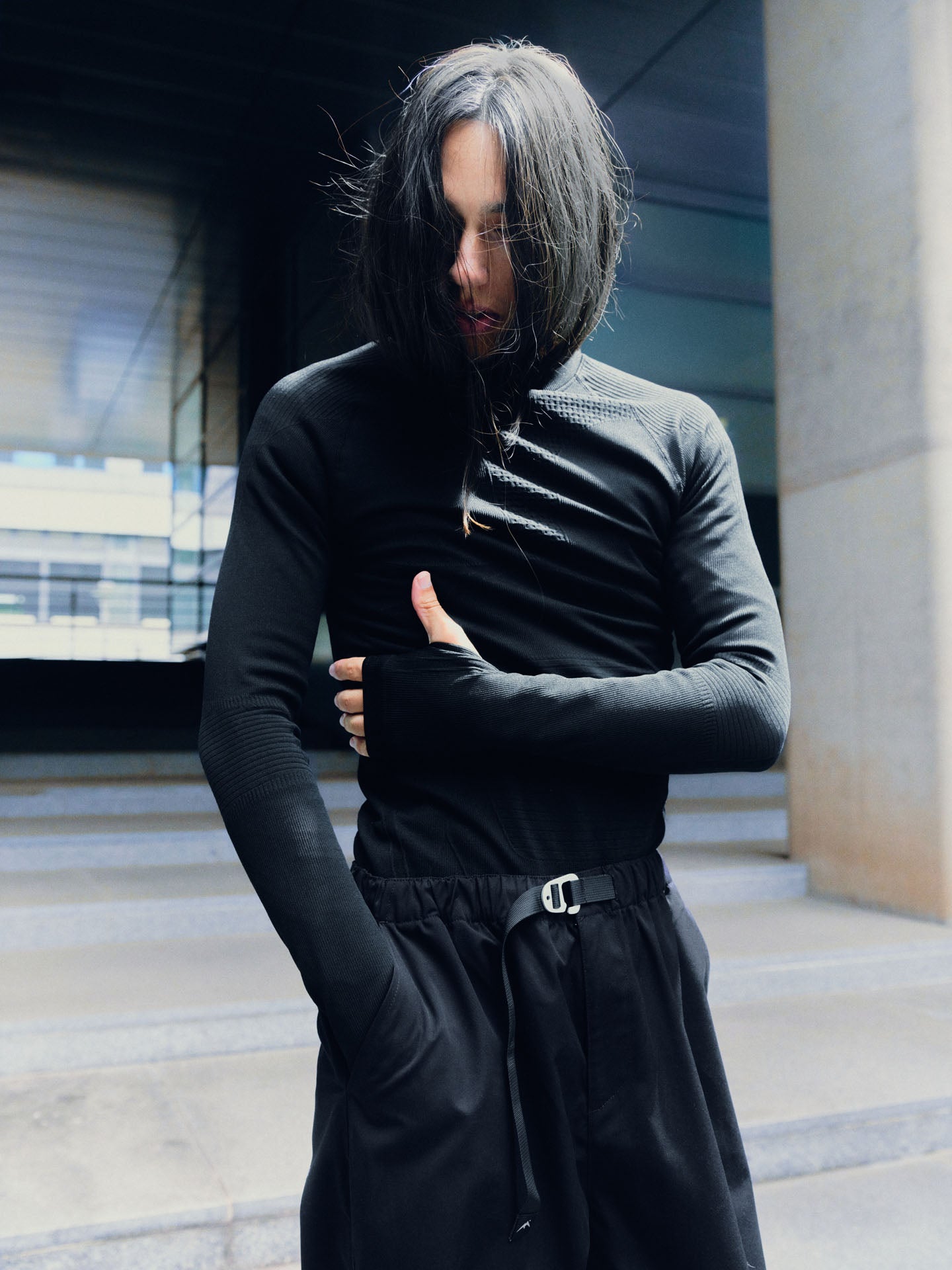 Designed with a sleek contemporary edge, this refined ensemble captures the minimalist sophistication of Copenhagen label BERNER KÜHL. Crisp tailoring meets fluid breathable layers in a muted modern palette, offering elevated comfort with a sharp architectural sensibility. Finished with sculpted footwear from Hoka, it is a look defined by quiet confidence and precise design.